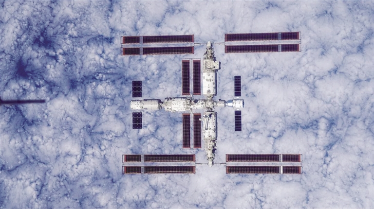 这是我国首次在轨获取以地球为背景的空间站组合体全貌图像,也是中国空间站的第一组全构型工作照。(刘诗瑶)