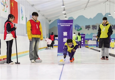 12月10日,参赛选手正在投掷冰壶。当日,呼和浩特第二届中小学旱地冰壶(冰壶选拔赛)暨首届中小学冰壶比赛在呼和浩特体育中心冰壶馆开赛,共有来自呼和浩特地区20所中小学的260多名运动员参赛。此次比赛旨在助力“十四冬”,为呼和浩特地区青少年提供冰壶交流锻炼的机会,推动冰壶项目的普及和开展,夯实后备人才基础。摄影/草原全媒·北方新报首席记者 牛天甲