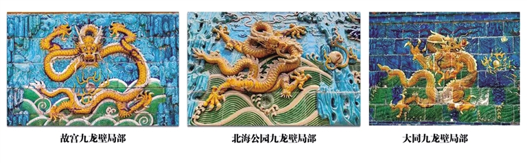 九龙壁属于古建筑照壁的一种,古时也称“隐壁”,设在院门内的屏墙称为“隐”,防止院内景象被一览无余。设在院门外的屏墙称为“壁”,是用来界定空间范围。我国现存著名的九龙壁有三座,分别在北京故宫、北海公园和山西大同。其中,北京故宫九龙壁级别最高。北京北海公园九龙壁是唯一一处双面九龙壁。山西大同九龙壁规模最大、年代最早。三座九龙壁在造型色彩、画面节奏以及工艺制作上都达到极为精湛的水平。