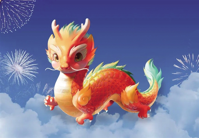 集万千神思于一身的“龙辰辰”充分彰显了中华文明的灵动之美和雅正之气。此外,“龙辰辰”的配色选取大繎、赩炽、赪霞、玉頩、春辰等中国传统色。“赪霞拂朝,苍烟懵夕。”赪霞色代表了红色的云霞,代表旭日初升时霞光万丈的青春色彩。春辰是冰雪初融,草木萌动的颜色,它所属的青绿色系正是东方青龙的代表色。青龙是中国古代天文四象之一,代表着春天、希望和生长,也赋予了“龙辰辰”冬去春来、辞旧迎新的蓬勃生机。