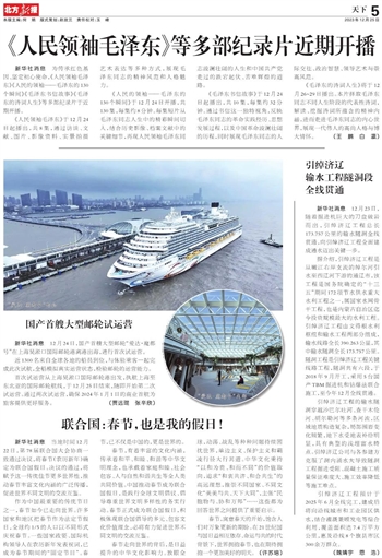 《人民领袖毛泽东》于12月24日起播出,共8集,通过访谈、文献、图片、影像资料、实景拍摄艺术表达等多种方式,展现毛泽东同志的精神风范和人格魅力。