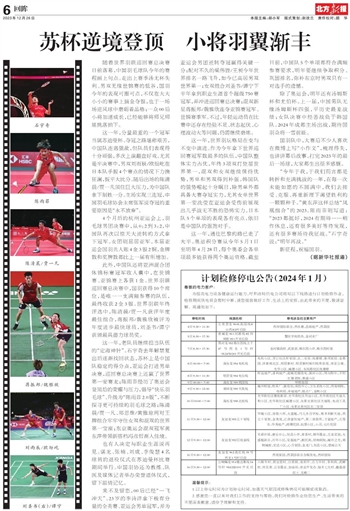 来不及留恋,00后已经“一飞冲天”。23岁的李诗沣拿下极有分量的全英赛、亚运会男单冠军,并为亚运会男团逆转夺冠赢得关键一分;配对不久的梁伟铿/王昶今年世界排名一路飞升,如今已高居男双世界第一;女双组合刘圣书/谭宁下半年拿到职业生涯首个超级750赛冠军,并冲进巡回赛总决赛;混双新星蒋振邦/魏雅欣连夺亚锦赛冠军、世锦赛季军。不过,年轻运动员在比赛中还存在经验不足、状态起伏、心理波动大等问题,仍需继续磨炼。