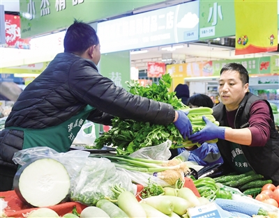 12月27日,市民正在选购新鲜的蔬菜。据了解,为了解决辖区居民买菜难问题,呼和浩特市新城区锡林北路街道车站东街社区党委积极协调沟通,在盛业广场一楼引进澳赢便民市场,给周边居民生活带来诸多便利。摄影/草原全媒·北方新报首席记者 牛天甲