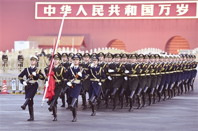 当国旗升至旗杆顶部,晨光和着欢呼声,铺满了天安门广场。