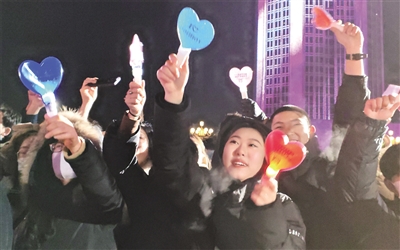 当时钟指向23:59的时候,所有人齐声倒数,“10、9、8、7……”新年钟声敲响的那一刻,呐喊声、欢呼声响起,人们互相祝福,无数个气球缓缓飘上天空,绚烂的烟花尽情绽放,此时的青城无比浪漫美丽。新的一年开始了,大家对未来充满了热爱,充满了期待……