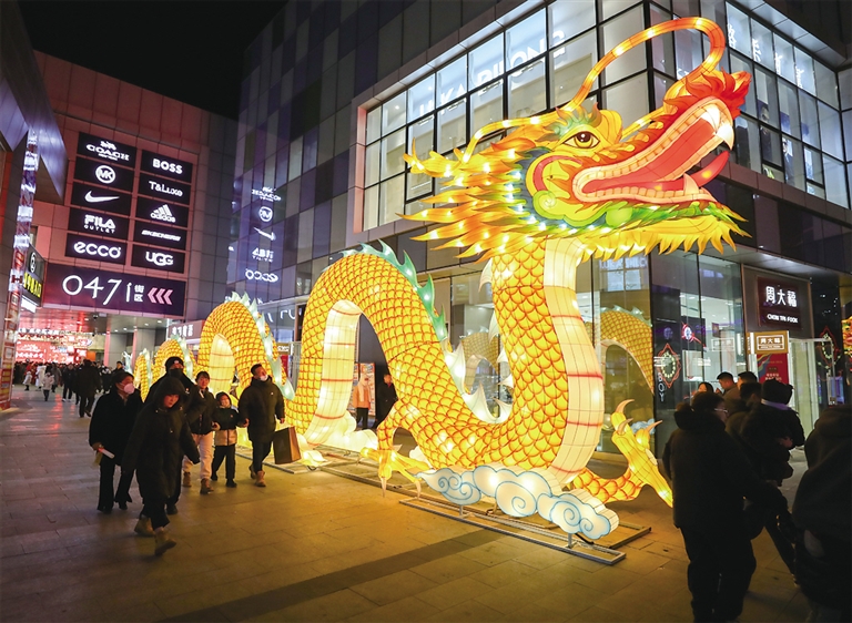 2023年12月31日,夜幕降临,在赛罕区小草公园,造型各异的灯组作品同时亮起,氛围感立刻拉满;在玉泉区大召广场,市民们欣赏到塞上老街城门楼敲钟、大召寺祈福、“千秋昭君”沉浸式街景演出等;在新城区奥莱小镇,舞龙舞狮接连上演;在回民区新华广场,跨年狂欢夜活动更是引燃了无数市民的激情,绚丽的烟花秀中,人们迎来了2024年。