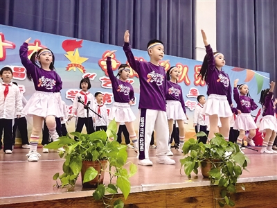 歌曲串烧、手语舞、手势舞、啦啦操、小品、魔术……45个节目内容丰富,形式多样,各班学生“十八般武艺”轮番登场,现场掌声雷动,一片欢腾。三年级(3)班表演的舞蹈《日不落》更是直接嗨翻全场,台下不少大朋友、小朋友跟着音乐节拍扭动起来。该校校长蒋莉也被孩子们的热情所感染,即兴演唱了一首《好大一棵树》,赢得满堂喝彩。