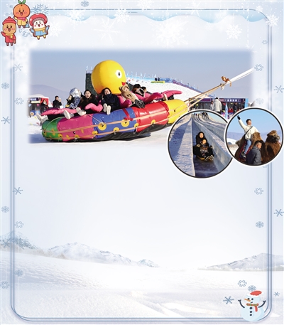 游玩项目:雪地滑梯、亲子乐园、雪上龙舟、雪地越野车等。