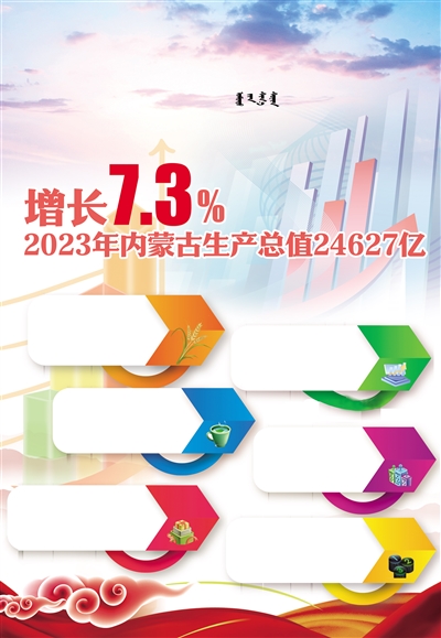 2023年,内蒙古生产总值24627亿元,按可比价格计算,比上年增长7.3%。其中,第一产业增加值2737亿元,增长5.5%;第二产业增加值11704亿元,增长8.1%;第三产业增加值10186亿元,增长7.0%。全区经济运行呈现多个亮点: