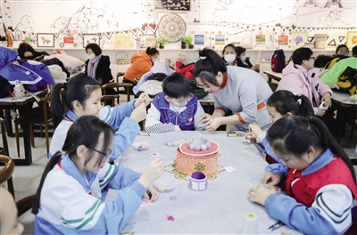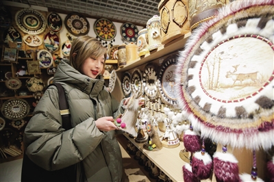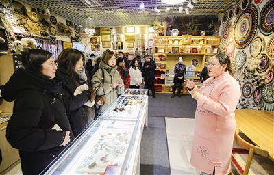 1月19日,参加“相约十四冬 魅力内蒙古”网络主题宣传活动的记者们走进位于鄂温克族自治旗民族文化产业创业园的“太阳姑娘”工作室,一件件精美绝伦的鄂温克民族特色工艺品让人叹为观止,其中用皮毛和彩石缝制的太阳花最具特色。