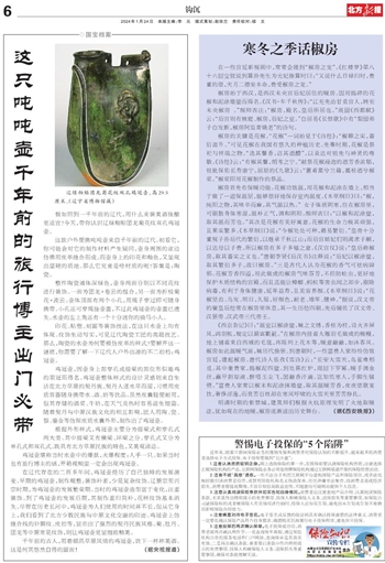 椒房的关键是花椒。“花椒”一词始见于《诗经》:“椒聊之实,蕃衍盈升。”可见花椒在我国有悠久的种植历史。先秦时期,花椒是祭祀与祥瑞之物。“选其馨香,洁其酒醴”,以表达对祖先与神灵的尊敬。《诗经》云:“有椒其馨,胡考之宁。”献祭花椒浸泡的酒芳香浓郁,祖妣保佑长寿康宁。屈原的《九歌》云:“蕙肴蒸兮兰藉,奠桂酒兮椒浆。”椒浆即用花椒制作的祭品。