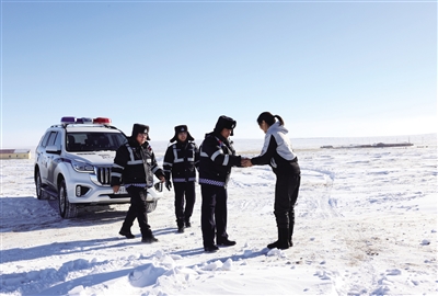 雪天受困,需要帮助时,牧区群众总会向交警们求助。一来二去,交警与很多牧民结下了友谊,在人烟稀少的牧区,服务与执法的过程,多了一份乡土人情。