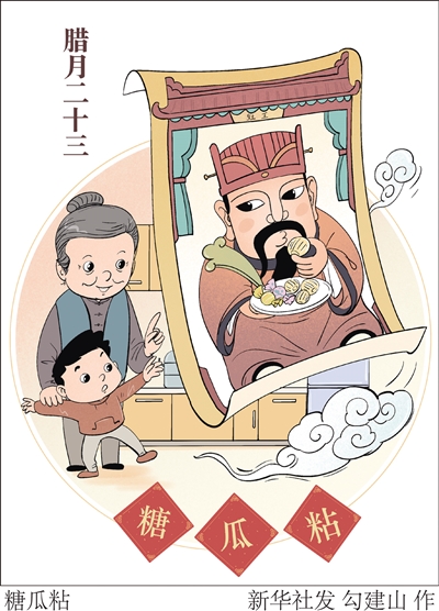 传统“小年”与“祭灶”息息相关。民间传说,每年腊月二十三,灶王爷都要上天向玉皇大帝禀报这家人的善恶,让玉皇大帝赏罚。因此送灶时,人们往往会在灶王像前摆放糖瓜。这类食品又甜又黏,取意灶君顾了吃顾不上说,上天后嘴被黏住,免说是非。