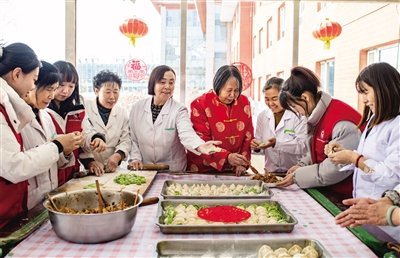2月6日,呼和浩特市玉泉区民政局“福至养老院 情暖夕阳红”迎新春主题活动在玉泉区夕阳红老年康乐园举行。志愿者、院方工作人员与老人们齐聚一堂,一起包饺子、挂灯笼、写福字、剪窗花,在欢声笑语中共迎佳节。摄影/草原全媒·北方新报首席记者 牛天甲