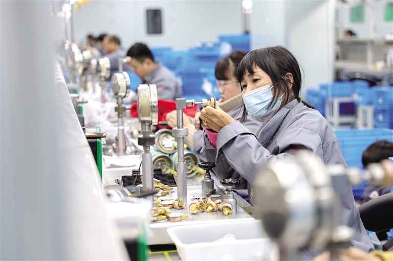 浙江长兴一家仪表企业的工人们在生产流水线上忙碌作业。