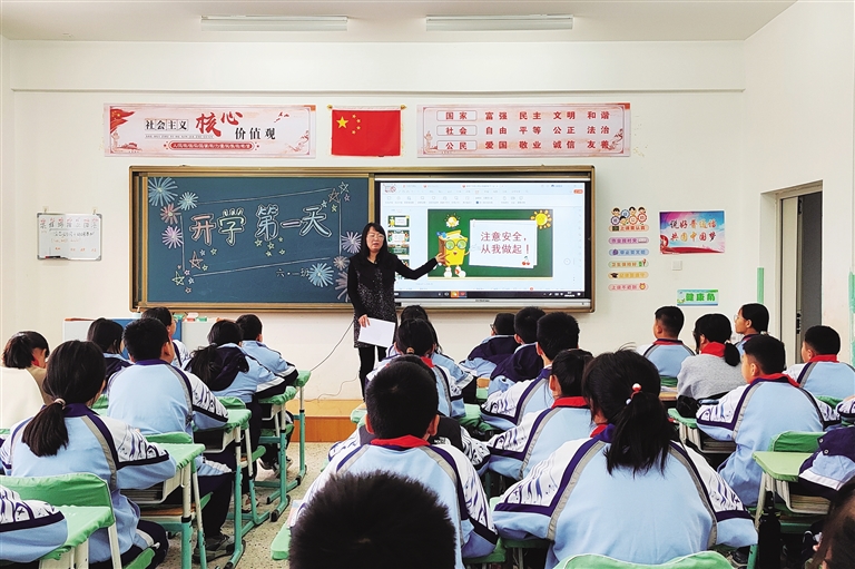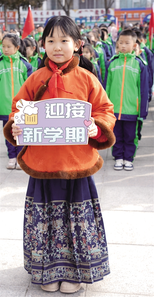 “终于开学了,见到了久违的老师和同学,心情格外激动。新的学期,我一定会好好学习,悉心听取老师的教诲,力争成绩更上一层楼。”一名同学开心地说。