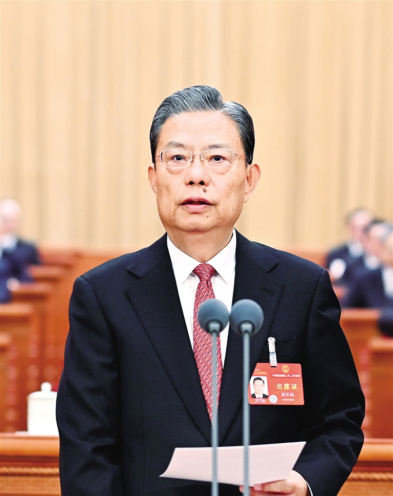 上午9时,赵乐际宣布:中华人民共和国第十四届全国人民代表大会第二次会议开幕。会场全体起立,高唱国歌。