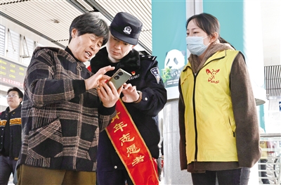包头铁路公安处达拉特西车站派出所民警为老年旅客提供力所能及的帮助