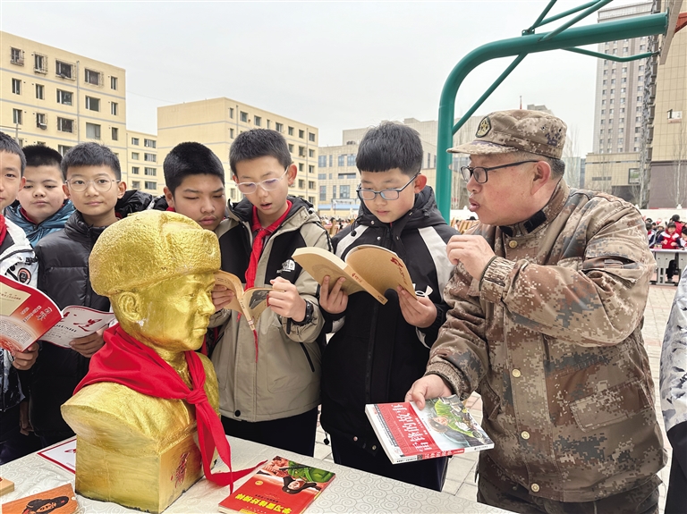 内蒙古万里行公益协会党支部书记、会长穆永俊为首府小学生讲述雷锋故事
