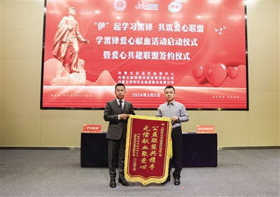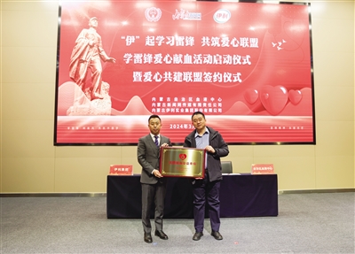 在活动现场,内蒙古新闻网传媒有限责任公司常务副总经理杨永利为伊利集团授予“公益联盟”锦旗,内蒙古自治区血液中心主任张硕为伊利集团授予“无偿献血公益单位”牌匾,自治区血液中心与伊利集团签署爱心共建协议,旨在共同推动本地区无偿献血及社会公益事业的进一步发展,积极推动双方实现合作公益、共同发展。