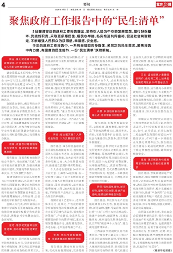 今年的政府工作报告中,一系列举措回应多群体、多层次的民生需求。聚焦报告中有力度、有温度的民生细节,一份“民生清单”跃然眼前。