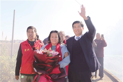 2023年11月18日,周六君和其他志愿者们,从宜兴站将韩爱荣送到高塍镇高遥村认亲。见到90岁的父亲吴南生时,韩爱荣激动地喊着“爸爸我终于回家了”,阔别60多年的父女俩抱头痛哭。