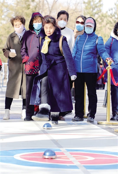 活动现场设置旱地冰壶、冰蹴球、趣味套桩、冰球射门等旱地冰雪健身活动,吸引了众多社区群众和在公园健身的市民参与。冰蹴球清脆的碰撞声与现场的欢呼声不绝于耳,体验旱地冰壶的健身爱好者们屏气凝神,将冰壶推向大本营……活动以现场累计打卡形式展开,完成所有项目打卡的市民可以获得精美伴手礼,大家热情高涨,各显身手。