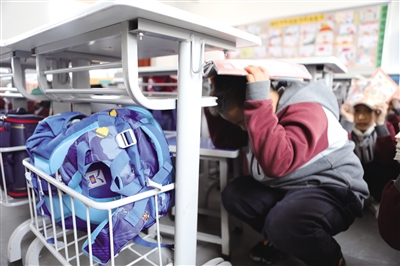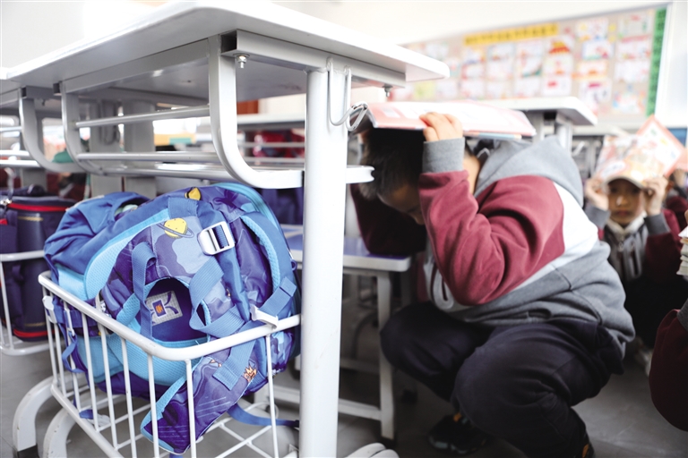 15时20分,随着警报声响起,地震应急疏散演练正式拉开序幕。学校立即启动应急预案,老师们组织学生按疏散路线,快速有序撤离,只见学生双手抱头,猫着腰,快速跑向操场指定安全区域就地蹲下,整个过程仅用了2分钟。“在我们学校,像这样的应急演练活动每个月都会举行2~3次,大大提升了老师和学生的应急反应能力和自救能力。”三年级的老师钱红霞接受记者采访时说。