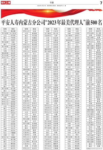 平安人寿内蒙古分公司“2023年最美代理人”前500名