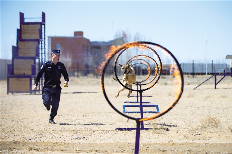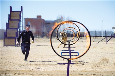 4月15日,内蒙古出入境边防检查总站二连出入境边防检查站组织警犬开展搜毒、搜爆、场地障碍等专业技能训练,增进警犬和训导员之间的协同配合能力,全面提升带犬民警综合素质和遂行多样化任务能力。