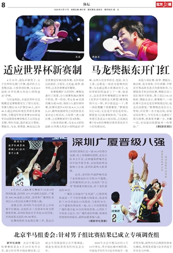 其他几场比赛,陈梦、樊振东、林诗栋、张本智和、早田希娜、平野美宇等高排名选手均获得胜利。与德国选手杜达的比赛,樊振东后三局打得并不轻松,第三局以14:12取胜。樊振东表示,新赛制下,一场比赛不会决定是否晋级或出局,他也在找感觉,“新赛制还是有点儿苛刻,只有第一名才能出线,容错空间非常小。今天在场上也遇到了很大困难,想着要多赢一分、多赢一局,对后面出线都能多一些帮助。”(据《新京报》)