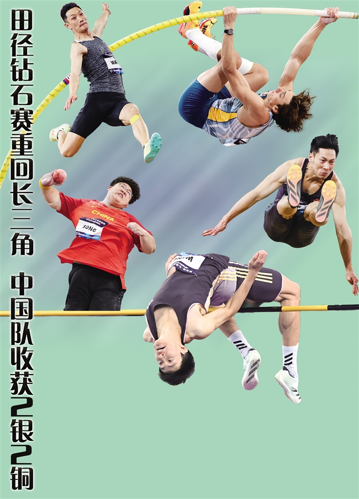 中国队王嘉男和石雨豪在男子跳远比赛中分获第二、三名,王嘉男跳出个人赛季最佳的8米04,比获得冠军的美国选手马奎斯仅少了1厘米。奥运冠军巩立姣没能延续在厦门夺冠的势头,她在女子铅球比赛中以19米61获得第四名,队友宋佳媛以19米83获得季军,布达佩斯世锦赛冠军、美国名将杰克逊(原名伊利)以20米03夺冠。