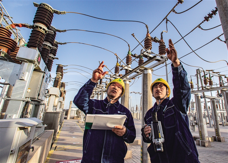 2007年,额济纳旗政府、内蒙古电力集团决定共同出资,建设一座110千伏电压等级的变电站,建成后黑鹰山地区将彻底结束依靠柴油机发电的历史。当年8月1日,黑鹰山110千伏输变电工程开工建设,第一批电力人背着行李、带着锅碗瓢盆进入黑鹰山地区,在这片广袤戈壁上开疆扩土。2008年3月13日,变电站建成投运,黑鹰山地区亮起了第一盏“长明灯”。