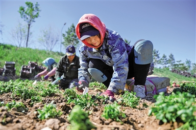 5月15日,呼和浩特市园林绿化工人正在栽种花卉。为了丰富呼和浩特市大黑河沿岸景观,市园林部门不断全面优化城市绿地建设,通过栽植苗木进行生态修复,增加具有观赏性的草和花卉,打造云溪花影景观。目前已经开始前期的花灌木、苗木栽植。经过不断提升改造,大黑河郊野公园已经成为市民、游客休闲旅游的好去处。摄影/草原全媒·北方新报首席记者 牛天甲