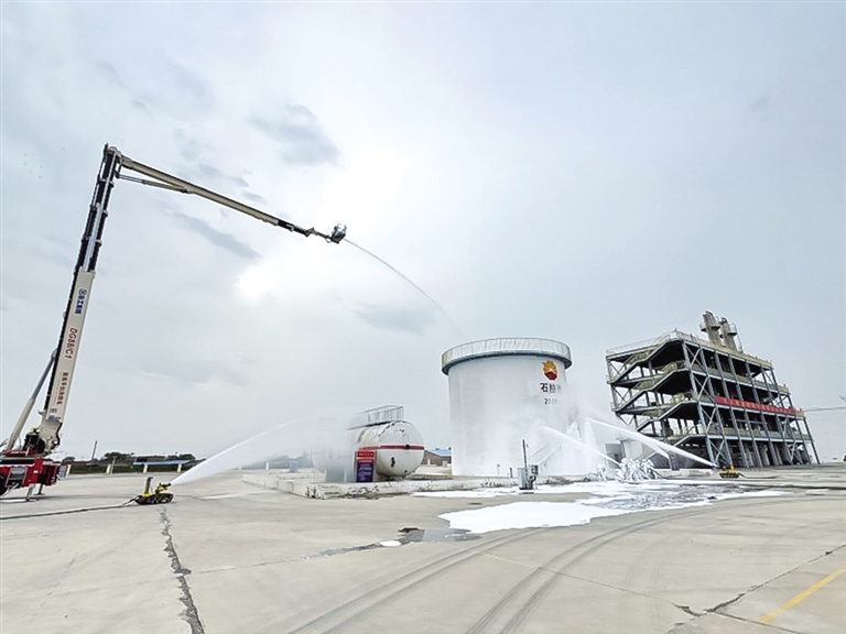 5月26日,呼和浩特市消防救援支队在训练与战勤保障支队开展化工企业灭火救援实战演练。演练假设石脑油罐发生全液面燃烧,化工编队开展地面池火灭火战法、内浮顶储罐火灾灭火战法等技战术的训练,对泡沫消防车、泡沫管枪、泡沫钩管、中倍数泡沫发生器、无人化作战模块等装备器材实际性能进行了现场测试。通过演练,有效检验了各种泡沫喷射器具和不同泡沫消防车的作战效能及无人化模块的实战用途,增强了参训消防人员成品油储罐类灾害事故实战处置水平,为成功处置各类化工灾害事故奠定坚实基础。