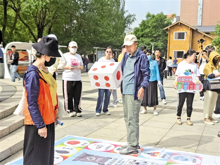 “果皮果核属于什么垃圾?”在垃圾分类飞行棋游戏中,随着“骰子”落地,参与的居民成功向前走了4步,脚下踩着的位置正好是“果皮”,工作人员话音刚落,居民就大声抢答道:“厨余垃圾”。最终,经过激烈PK,这位居民率先到达终点,领取了一份精美纪念品。“活动非常有趣,在游戏中学习到垃圾分类的知识,以后我们在家也要有意识地做好垃圾分类工作。”辖区居民刘女士做完游戏后对记者说。