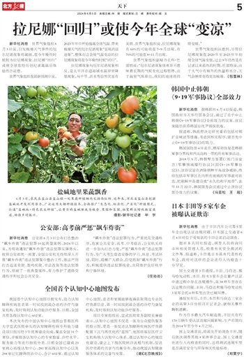 拉尼娜现象与厄尔尼诺现象相反,是太平洋赤道海域水温异常降低现象,与干旱、洪水等自然灾害有关联。世界气象组织说,拉尼娜现象有60%的可能将在7~9月出现,有70%的可能在8~11月出现。
