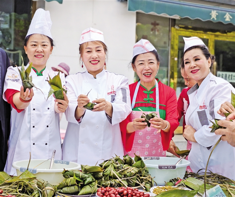 现场还进行了“浓情粽意·节日里的青城”包粽子、结五彩绳、做香包、挂艾草等端午节民俗文化体验活动。各族群众欢聚一堂,在同庆佳节中追溯中华文化、传承中华文脉、颂扬时代先锋、传递榜样力量。为了传递正能量,礼遇道德模范,主办方为20位呼和浩特市道德模范送上粽子,向他们致敬。