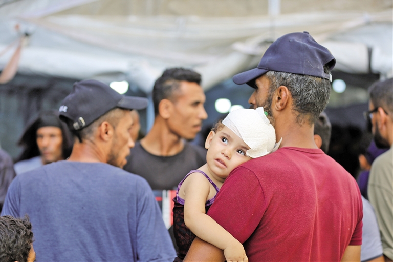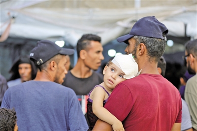 在加沙地带中部努赛赖特难民营拍摄的伤员