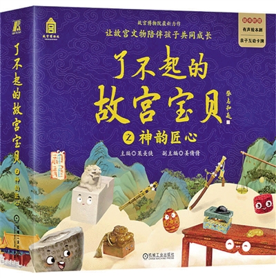 《了不起的故宫宝贝之神韵匠心》系列绘本是故宫博物院献给孩子们特别的礼物。作者从庞大的故宫博物院藏文物中精心挑选出12件,包含书法、文房、印玺、铭刻、乐器、漆器、木器、铜器、金银器、武备、天文、医药等类别,创作了12个送给孩子的动人故事。文物们化身故事的主角,将自己的来源、经历、工艺、功能等知识通过故事情节加以阐释,真正实现了文物“活起来”。