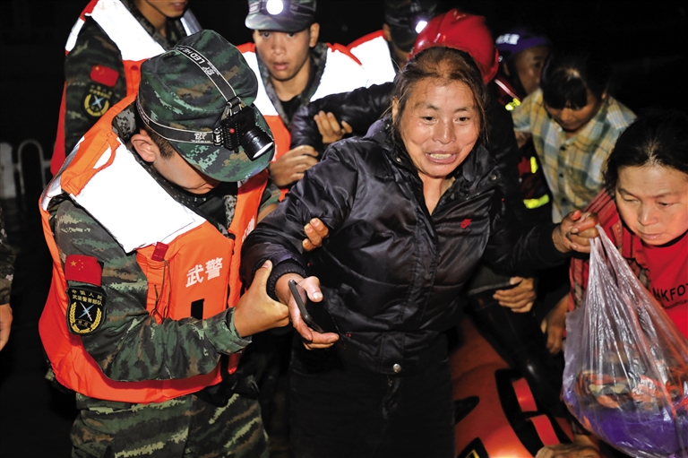 为了能让受灾群众早日恢复正常的生活,武警官兵们不怕脏不怕累,用自己的双手一铲铲、一车车,清理了90多吨的垃圾和淤泥。