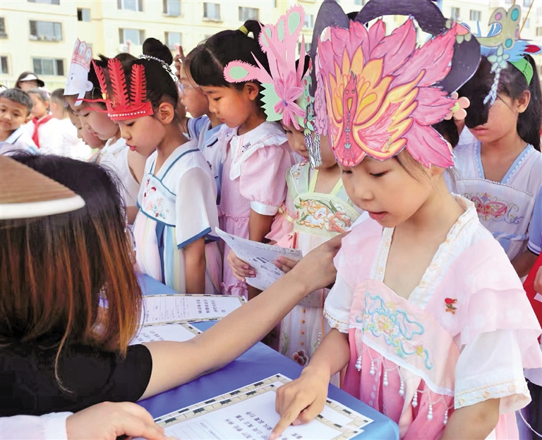 测评活动中,同学们身穿《西游记》中各角色服饰,身临其境地进入“大圣闹天宫”“真假美猴王”“天竺收玉兔”等经典情节中。在这些情境中,同学们不仅加深了对传统文化的理解,而且全面展示他们字词认读、课文朗读、古诗背诵、口语交际等基本素养。