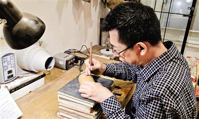 “我时常跟自己较劲,一件竹刻作品,总要经过数次修改打磨才觉得满意,有时一件作品被买走后,还想要把它找回来再次完善。”茹星说,竹刻用具在文房清赏、茶道、香道、文创领域的应用非常广泛,传统文化里很多图案、纹饰、文字,都可以通过竹刻呈现在作品中,他希望将身心和情感都投入到竹刻中,成为把竹刻技艺、文化符号传承下来的手工艺人。