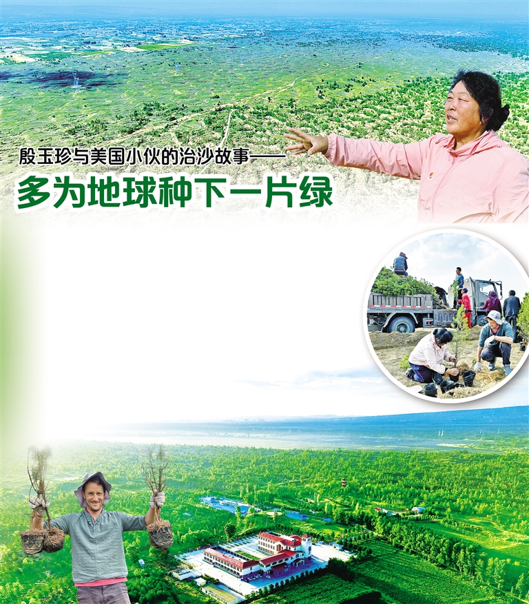这对殷玉珍来说犹如雪中送炭。她用这5000美元买了数万棵优质树苗。不到一个月,当赛·考斯基前来殷玉珍家拜访时,看到这批树苗已经陆续在沙地里安家,十分欣喜。如今,这数千亩林地郁郁葱葱、枝繁叶茂,见证着毛乌素沙地的绿色蝶变、绿色坚守,讲述着地球村上的绿色情谊、绿色担当。