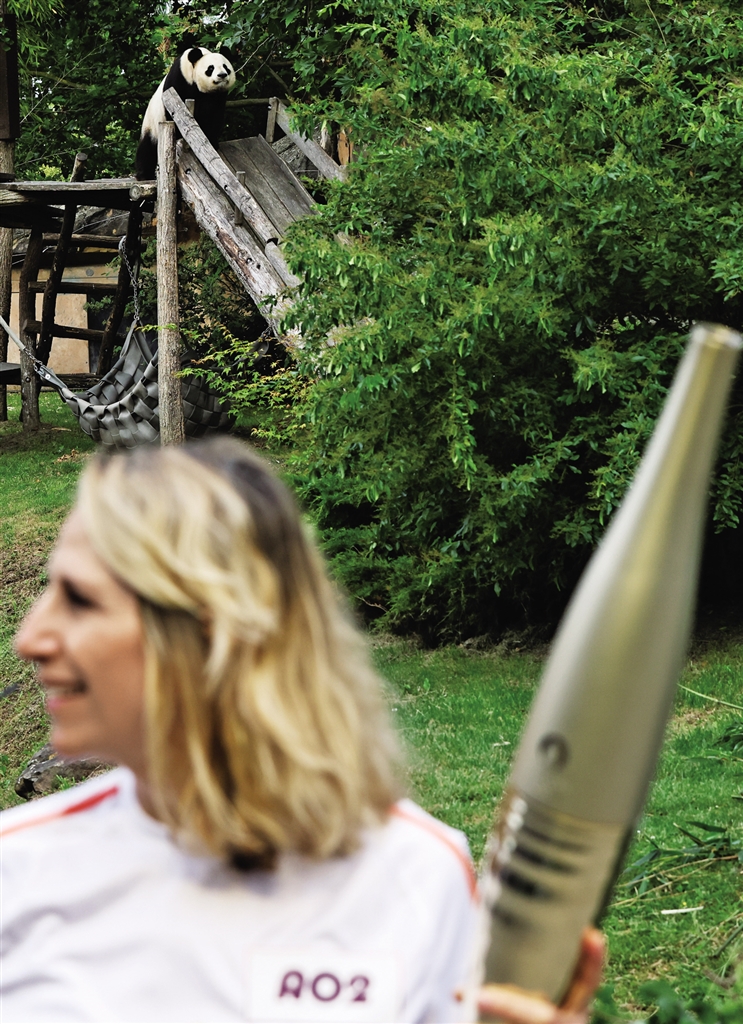 这有趣的一幕发生在7月8日的奥运火炬传递过程中。当日,奥运火炬在卢瓦尔-谢尔省传递,第一站就来到颇有名气的博瓦勒野生动物园。这里是法国第一座也是唯一一座拥有大熊猫的动物园,2012年大熊猫“欢欢”和“圆仔”来到这里,翻开中法大熊猫合作的新篇章。