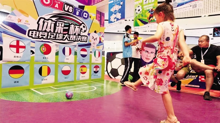 在现场,内蒙古体彩设置了有奖知识问答、趣味球队九宫格射门、现场竞猜等多种互动体验,还有专业人员向观众讲解足球知识、技巧,很多观众主动上场一试身手。