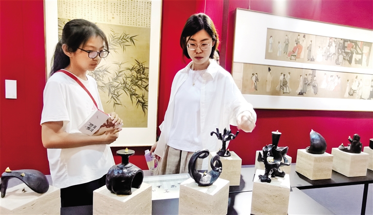 艺博会现场,齐白石、张大千等国宝级书画大师的作品以及各类艺术佳作、琳琅满目的文创产品和民间艺术品展览吸引了众多市民游客。