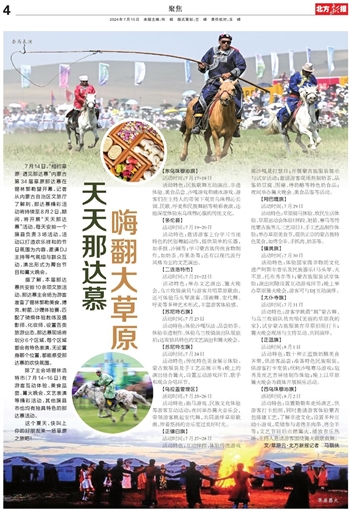 活动特色:传统特色美食展示体验、蒙古族服装及手工艺品展示等;晚上的演出结合篝火,设置互动游戏环节、歌手和观众合唱环节。