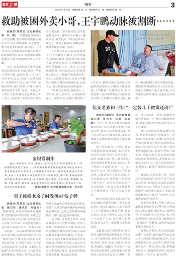 “外卖小哥得救,我就安心了,不后悔。这么热的天,小哥在厕所里万一晕倒休克,后果不堪设想。”7月15日,躺在内蒙古自治区中医医院住院部的王宇鹏很干脆地说道。王宇鹏是一位健身达人,自己经营着一家汽车美容店。经医院初步诊断,王宇鹏右小腿的动脉、静脉、神经被割断,经手术脱离危险,需住院两周继续治疗。虽然负伤,但是王宇鹏说:“救人是本能,以后再遇到这样的情况,还是会出手相救。”