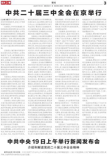 新华社北京7月18日电 中国共产党第二十届中央委员会第三次全体会议公报